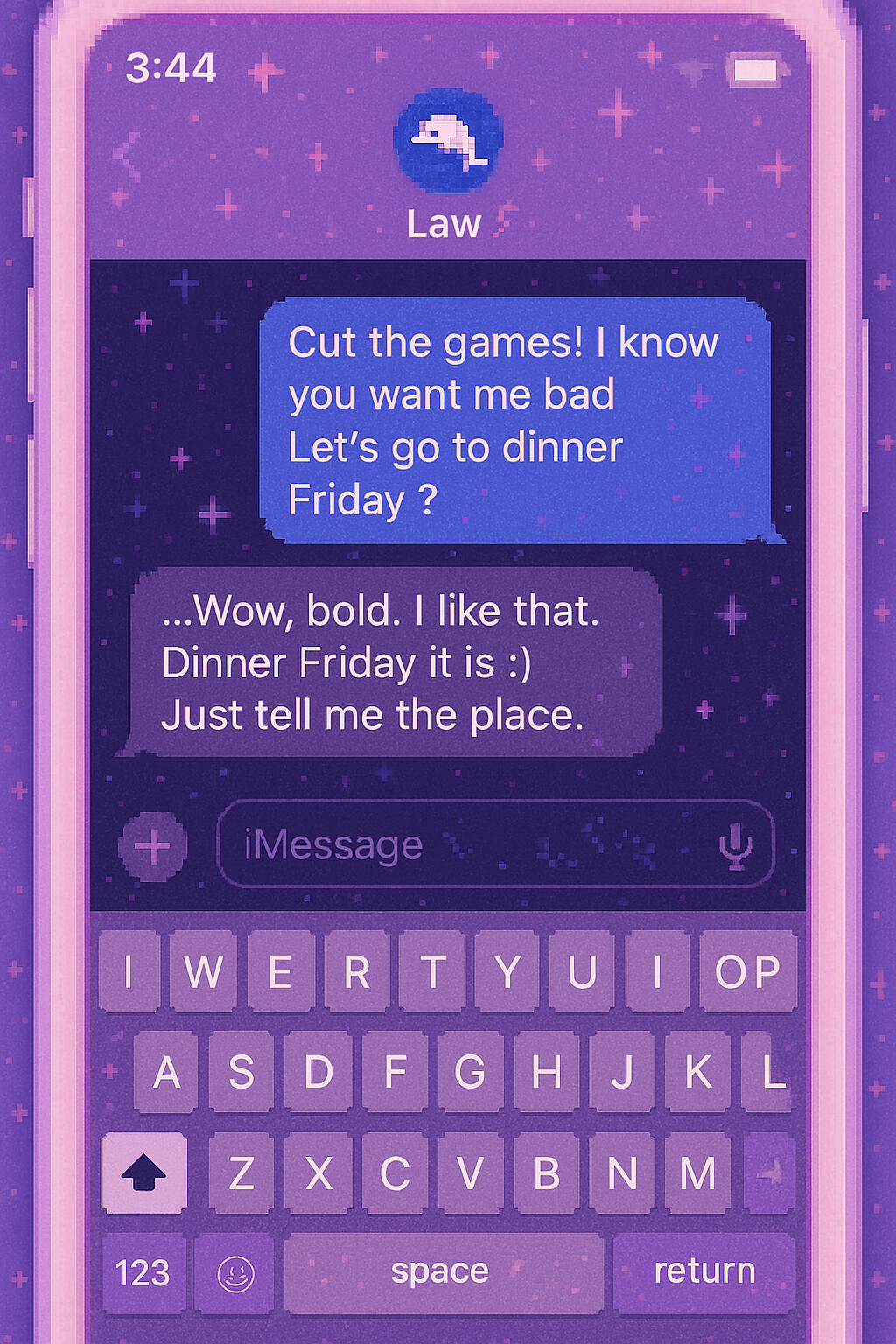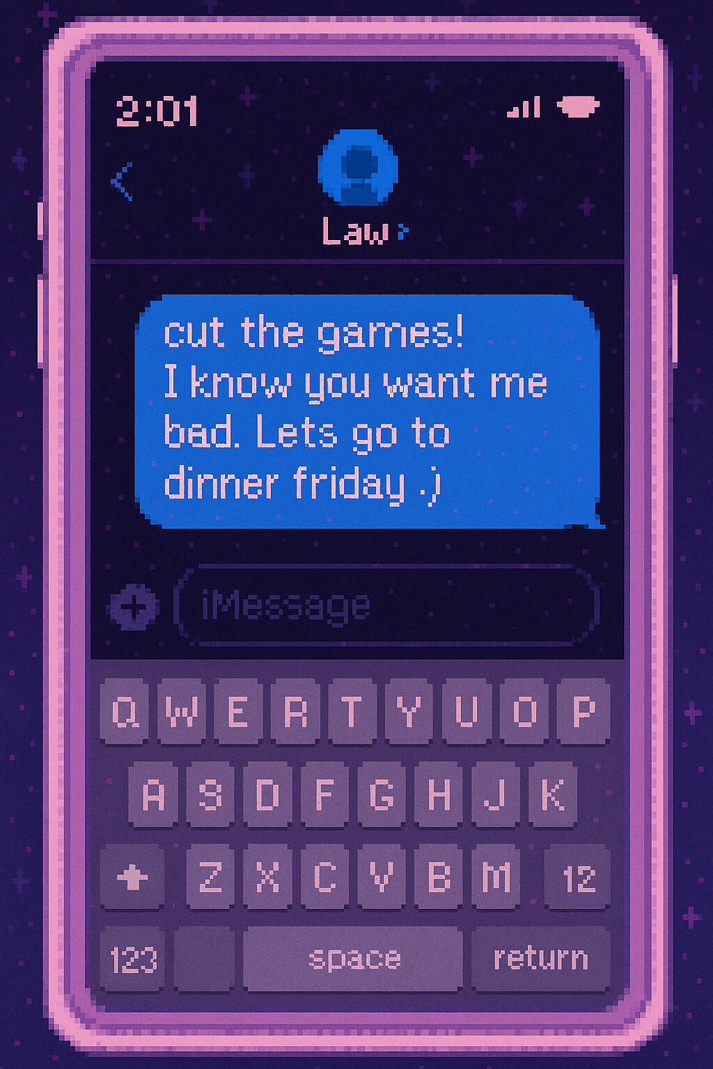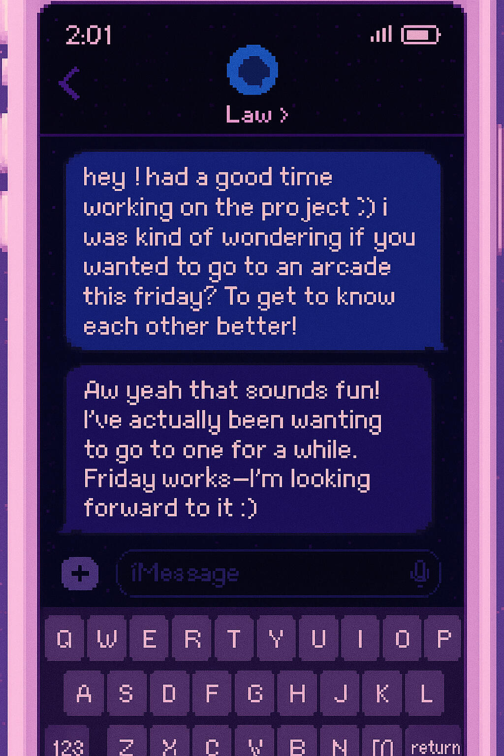 Hey! I'm having so much fun. I love making memories with you. We really clicked tonight <3
