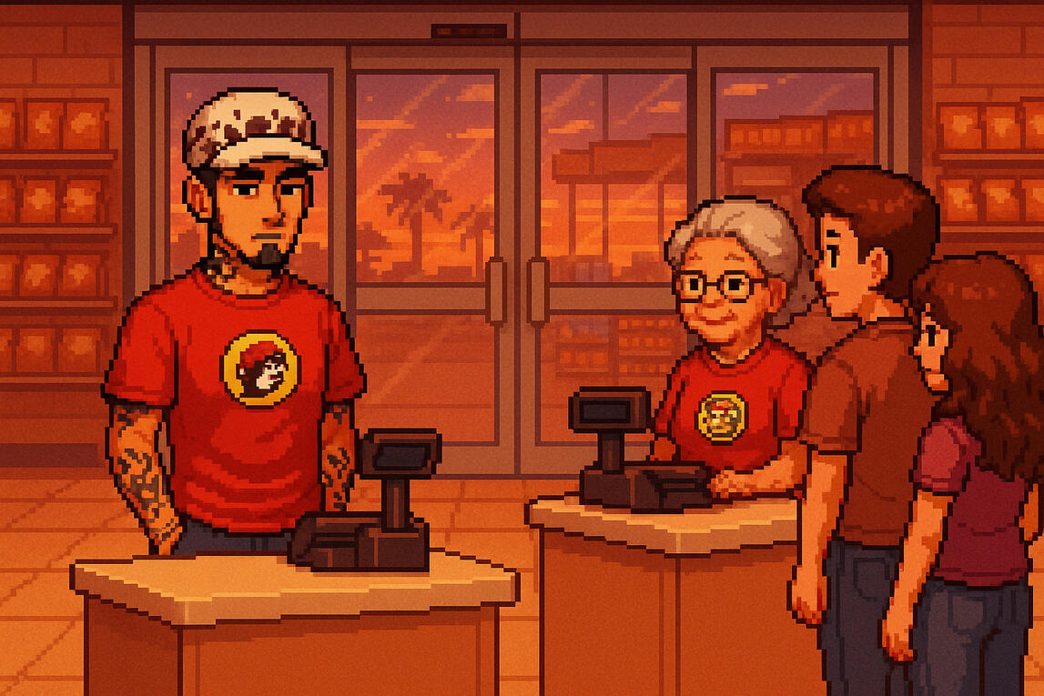 Dude. Hot guy at the register. We are NOT going there. I don't care if we have to wait.