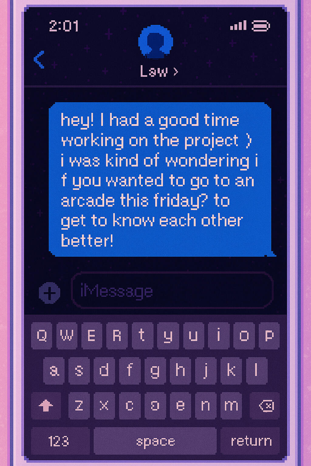 Hey! I'm having so much fun. I love making memories with you. We really clicked tonight <3